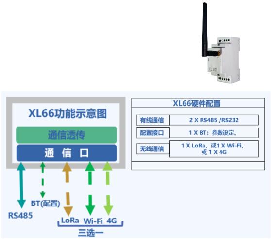 一对基于LoRa无线传输模块的XL66串口无线转换器,可以分别通过RS485或232接口连接串口设备读取数据,2台XL66通过LoRa无线传输技术,建立稳定的无线通信链路,实现串口设备之间的数据无线传输。